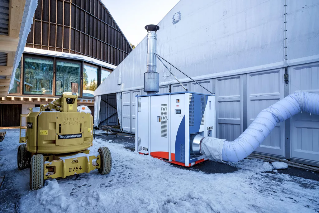 Unabhängig von der Anlagengrösse und dem Einsatzgebiet bietet Suter Entfeuchtungstechnik flexible Heizzentralen nach dem Plug-and-Play-Prinzip. Sie bezahlen eine Basismiete für die Anlage und einen festen Preis pro bezogene Kilowattstunde Wärme. Dank der modulierenden Technik unserer provisorischen Heizungen wird immer genau die benötigte Wärmemenge bereitgestellt – effizient und bedarfsgerecht.