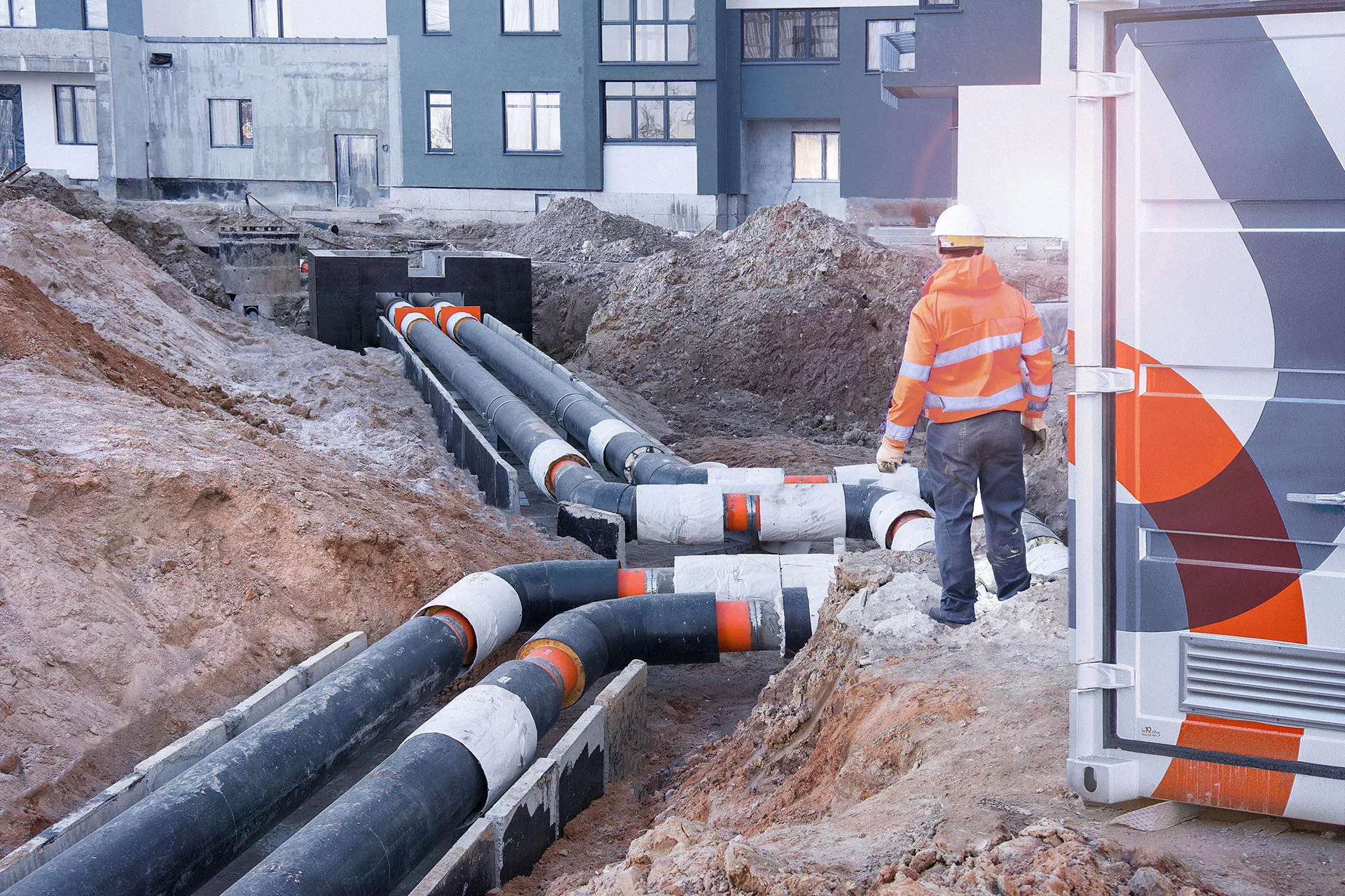 Bei Umbau- und Erweiterungsarbeiten an bestehenden Wärmeverbundnetzen lassen sich Unterbrechungen der Energieversorgung oft nicht vermeiden. Unsere mobilen Heisswassermodule bieten die ideale Lösung: Sie können nahtlos in das bestehende Leitungsnetz integriert werden und übernehmen die Wärmeerzeugung – ob für Teilstränge oder das gesamte Verbundnetz. Mit effizienter, kostengünstiger und nachhaltiger Wärme aus Holzpellets sichern unsere Heisswassermodule eine durchgängige Energieversorgung, selbst bei Bauarbeiten.